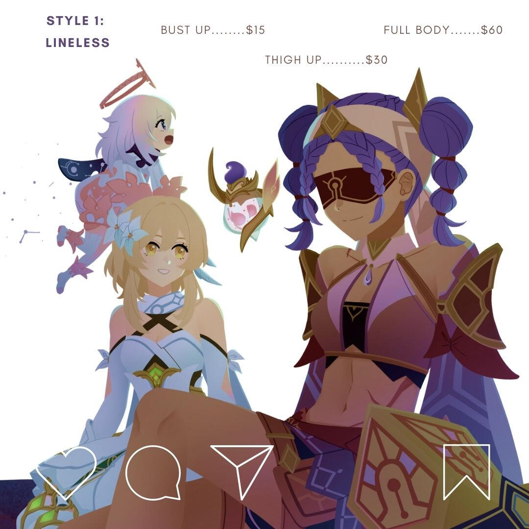 ***This is a general guideline. You can always ask! But please keep in mind that my forte is drawing female or androgynous characters~